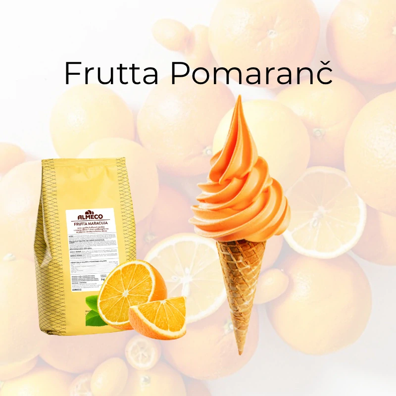 - Zmes v prášku na prípravu pomarančovej točenej zmrzliny.