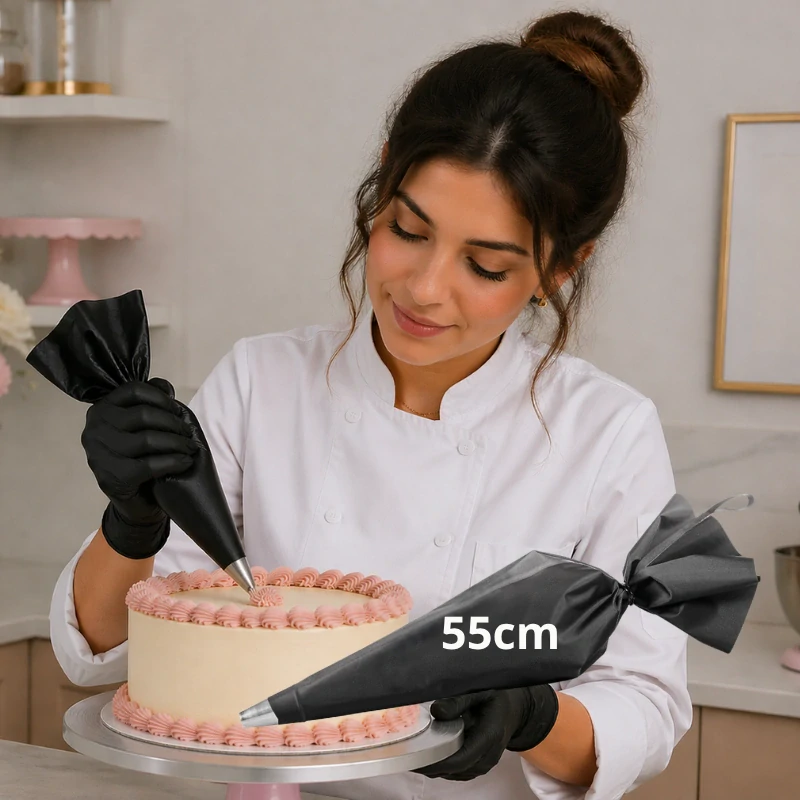 Znovu opakovateľné vrecko navrhnuté pre potreby profesionálnych cukrárov a kucháro . Vyrobené z vysoko pevného technického materiálu, je ideálne aj na tie najhrubšie a najhustejšie cestá.