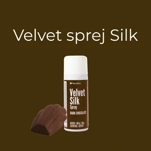 Zamatový hodvábny sprej Velvet Silk vytvára mimoriadne jemný zamatový efekt vďaka inovatívnemu olejovému zloženiu. Povrch vašich dezertov bude pôsobiť ešte sofistikovanejšie, pričom si farby zachovajú svoju intenzitu.